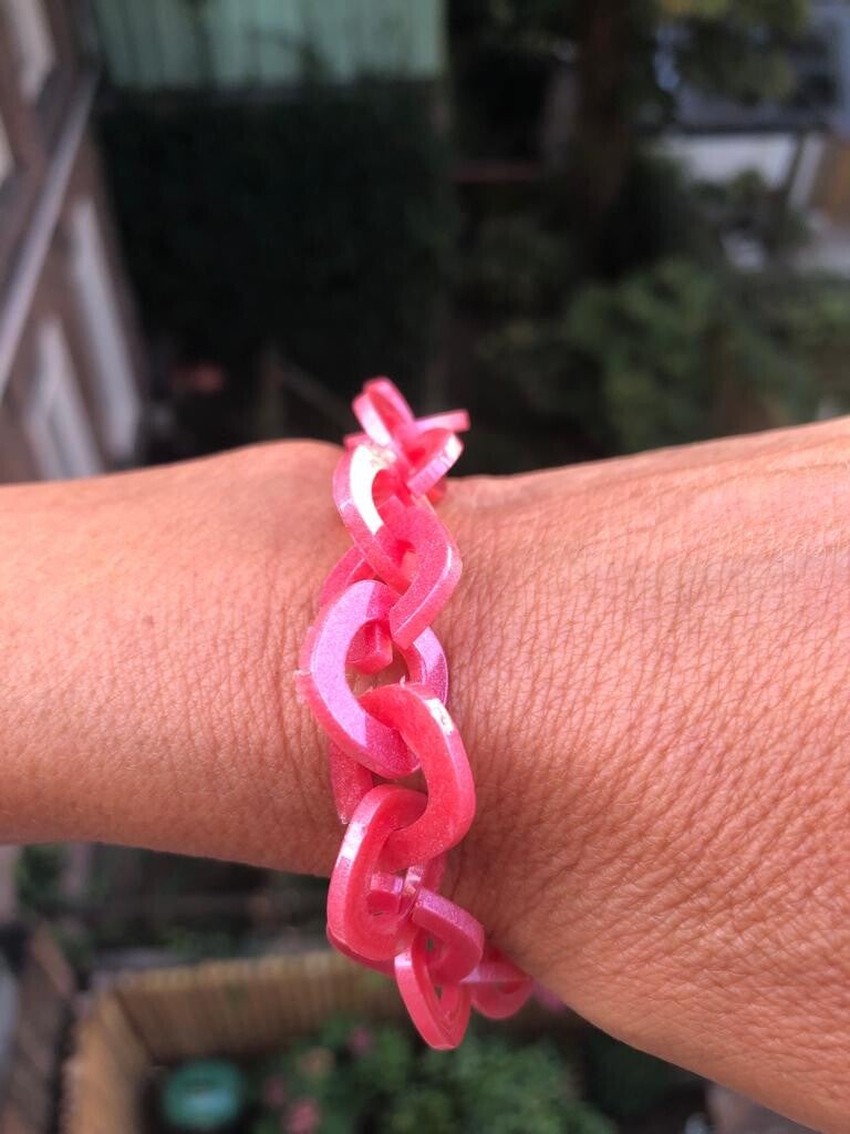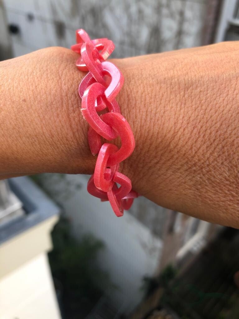 Superschattige romantiche armband van organisch gevormde vierkante schakels in koraalrood.